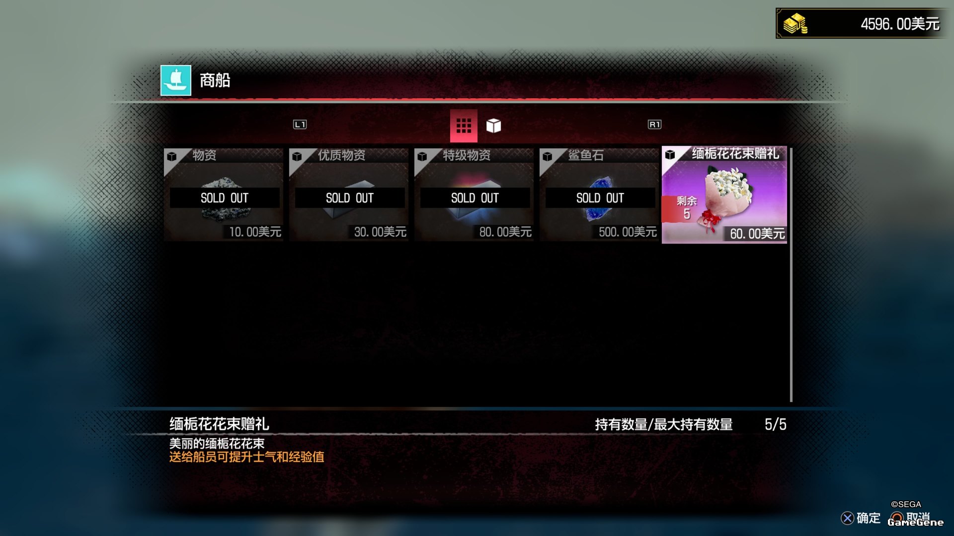 | 装饰:歌舞夜总会GRAND的招牌 | / | / | 出航准备,更改吾朗号的外观,500美元购买 |