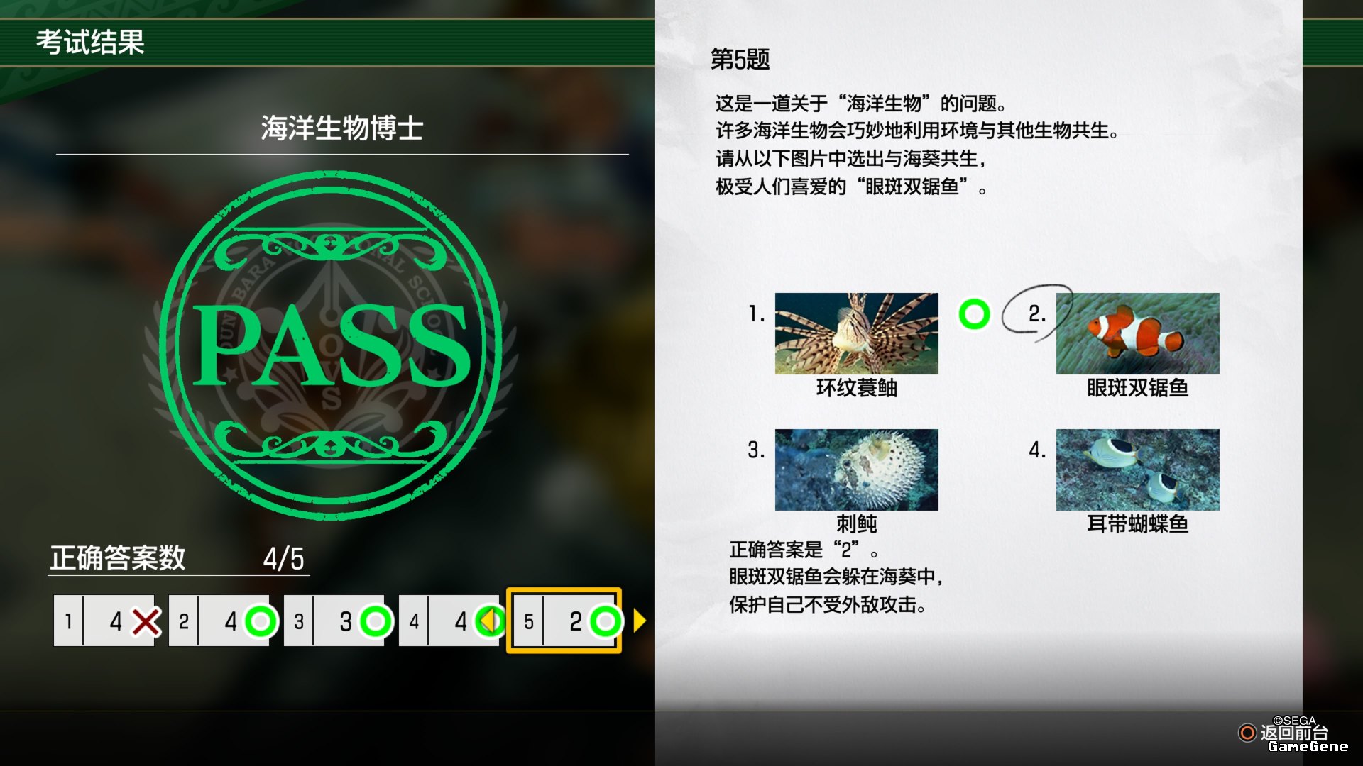 | 5 | 环境 | 许多海洋生物会巧妙地利用环境与其他生物共生。请从以下图片中选出与海葵共生,极受人们喜爱的“眼斑双锯鱼” | 眼斑双锯鱼(海底总动员,尼莫小丑鱼),图片如下 |