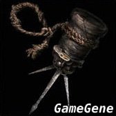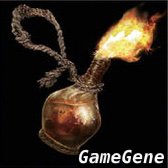| 带绳燃烧弹 縄付き火炎瓶 | 掷向自身后方便会燃起熊熊大火的带绳火焰瓶。 相比普通火焰瓶的掷法,可打敌人一个措手不及。 就像曾经发生在旧亚南悲剧时,存在着对灰血病净化的偏见一样,猎人认为狩猎野兽就应当使用火焰。 或许正因为这样,一部分野兽病态般畏惧火焰。 | 10 | [商店]炸药桶猎人徽章入手后 |
