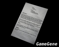 尊敬的警察局长艾恩斯: 我的实验室安保就全靠你了,叫你那些大块头见到可疑人物就开枪。 别担心会杀死任何人,就算他们是安布雷拉的员工也一样。 我就差那么一点点就要做出G病毒了,不希望任何混蛋坏我的事。 ——W.B.