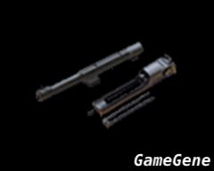 散弹枪的零件,包括枪管扩展组件和木制枪托。