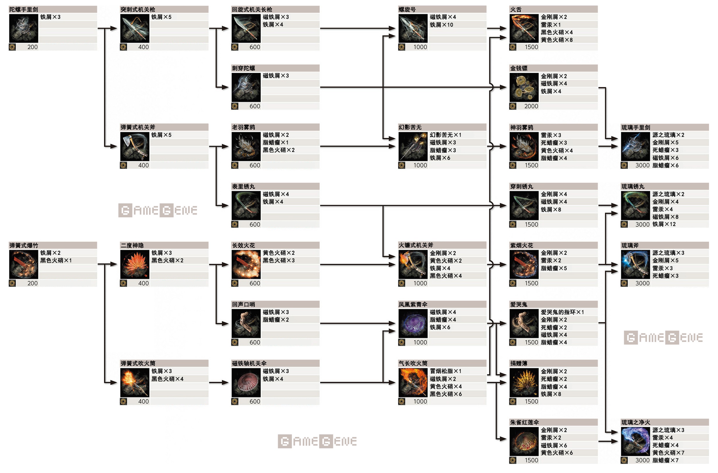 | No.15 |  | 火舌/火走り | 【强化】金刚屑x2 雷汞x1 黄色火硝x4 黑色火硝x8 |