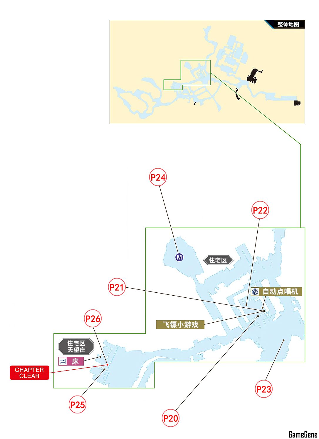 | P21 | 消磨时间 | 消磨时间行为如下: ①-玩飞镖 飞镖获得排名第一后,可在CH.04从威吉处的奖品 ②-调查自动点唱机 ③-调查黄花 |