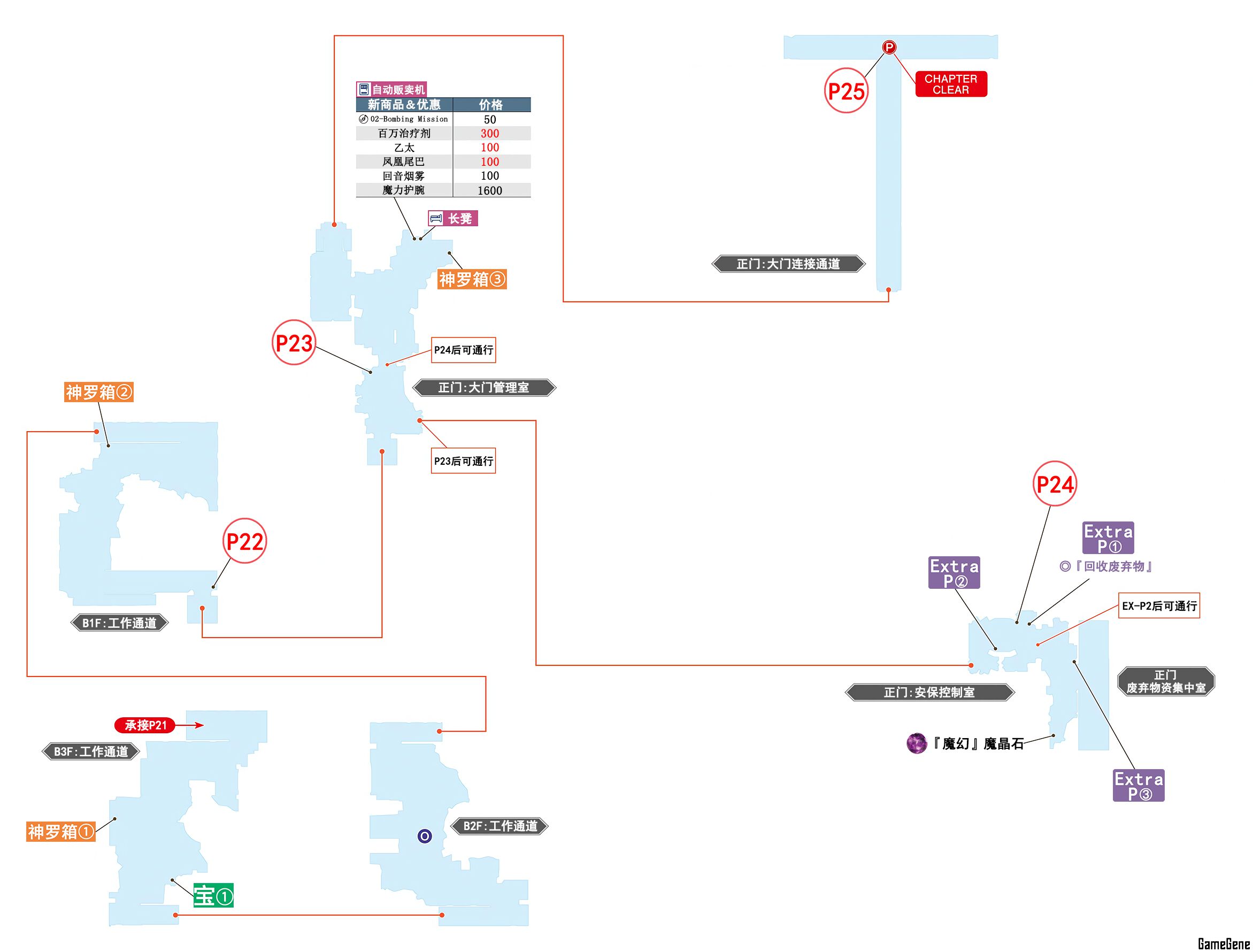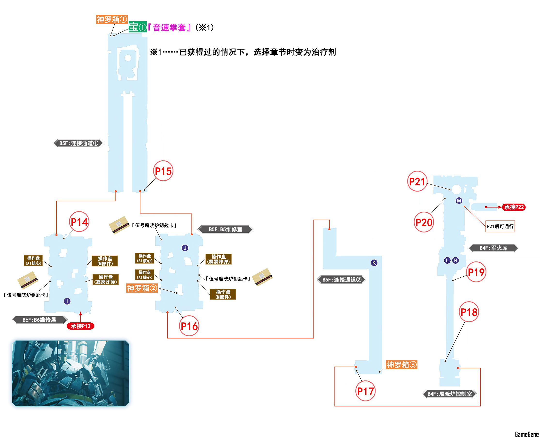 | P8 | 调查操作盘废弃BOSS的M部件 | B8F~B5F各层都有维修层用来搬运「暴风破坏者」零件。 通过消耗一张钥匙卡可选择废弃一个运输中的零件。 共有3种零件可选择废弃,详见下表。 根据废弃不同,后续P24附近的EX任务获得的奖励也不同。 |