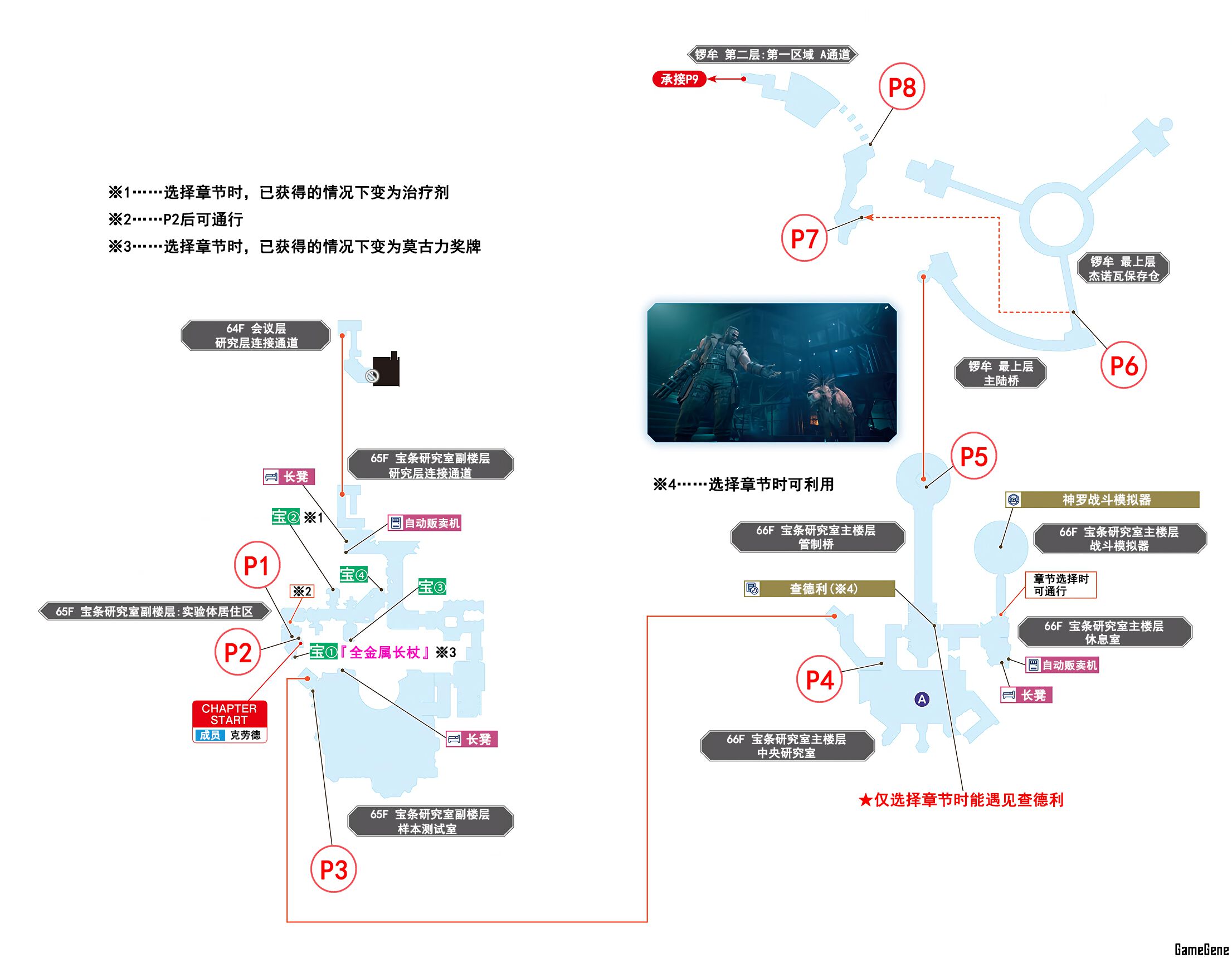 | P9 | 与赤红XIII汇合并一同打倒敌人 | 战斗:无名者×2 |
