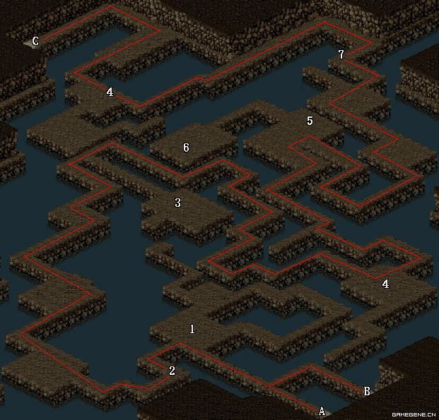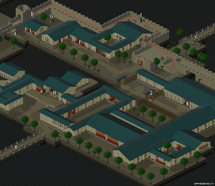 | A.客栈大厅 | B.往城墙中段A | C.往城墙中段B |