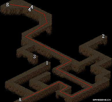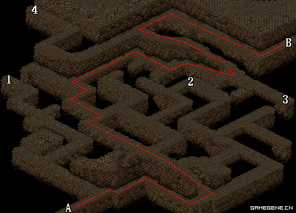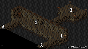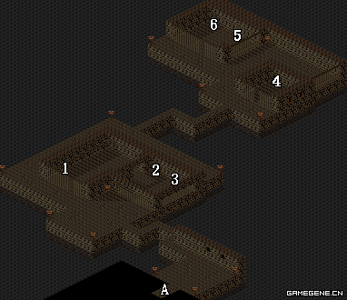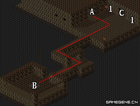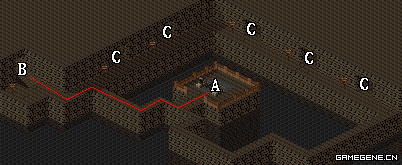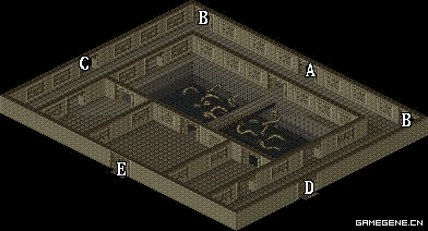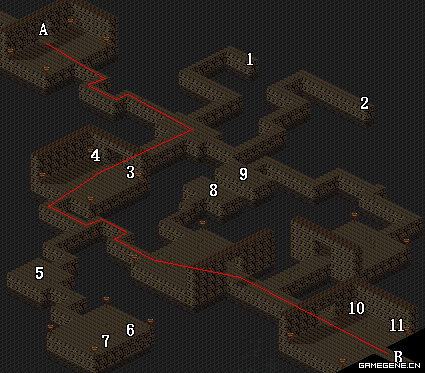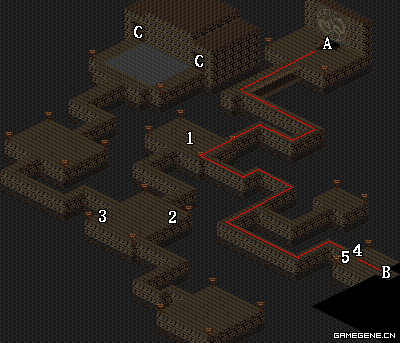 | A.地下宫殿下层通道 | B.地下宫殿上层入口 | C.魔兽培养室 |