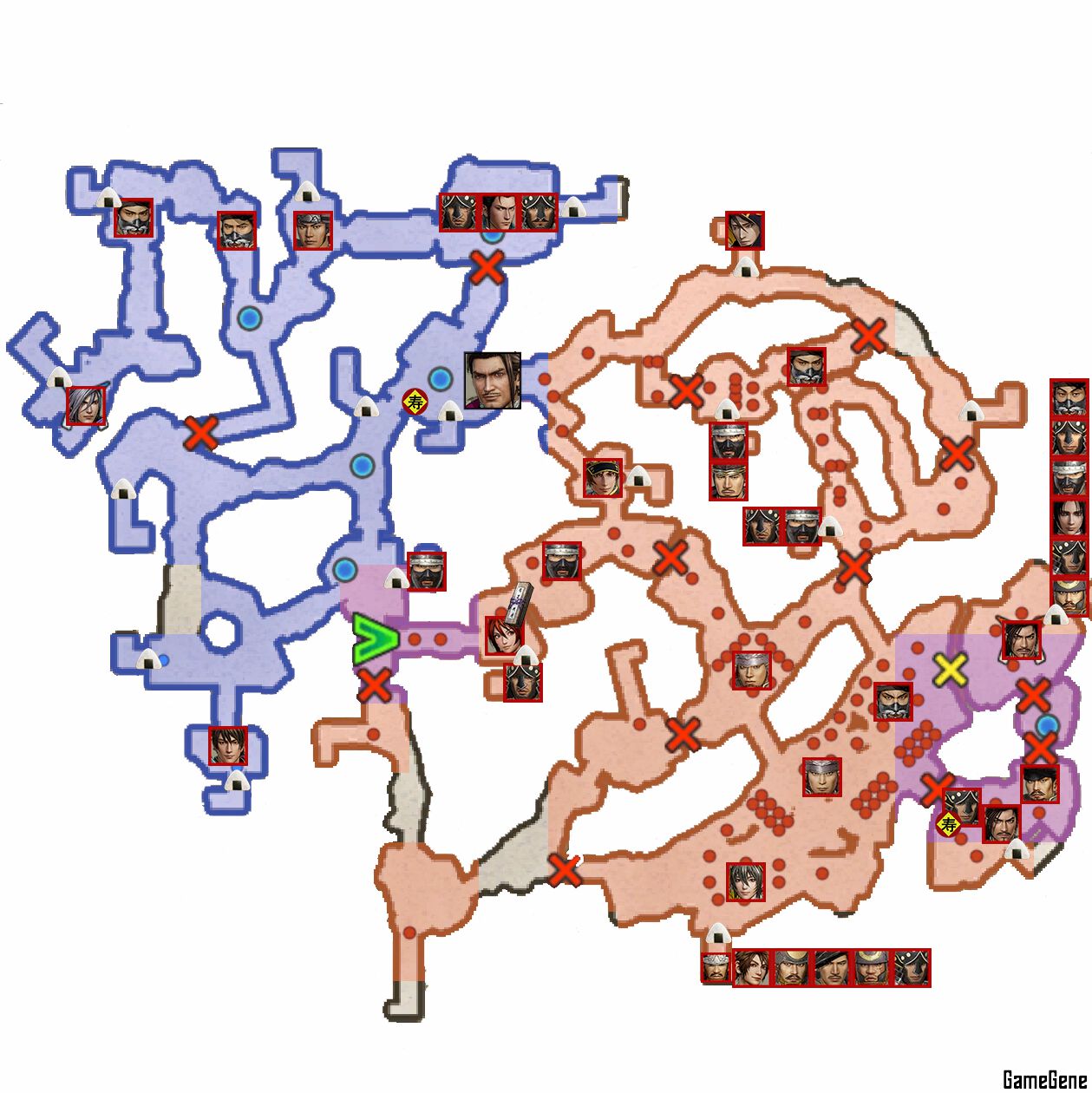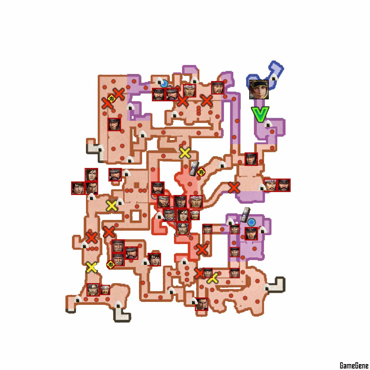 | No.2 | 分段中庭战力 | 北室开启后靠近阿曾沼广秀 | 击败阿曾沼广秀、熊谷信直与赤川元秀 分散中庭的战力! | 大厅开启! |