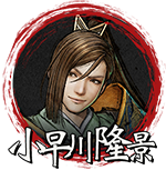 | No.27 |  | 小早川隆景 Kobayakawa Takakage CV:冈本宽志 【解锁使用条件】 第五章:光秀篇【上月城之战-毛利军】 | 毛利元就三子。 肩负毛利家未来、自尊心强的军师。 因为年轻,毫不怀疑自己的才智,总是充满自信地行动。 在与尼子家的战斗中与鹿介多次衝突。 |