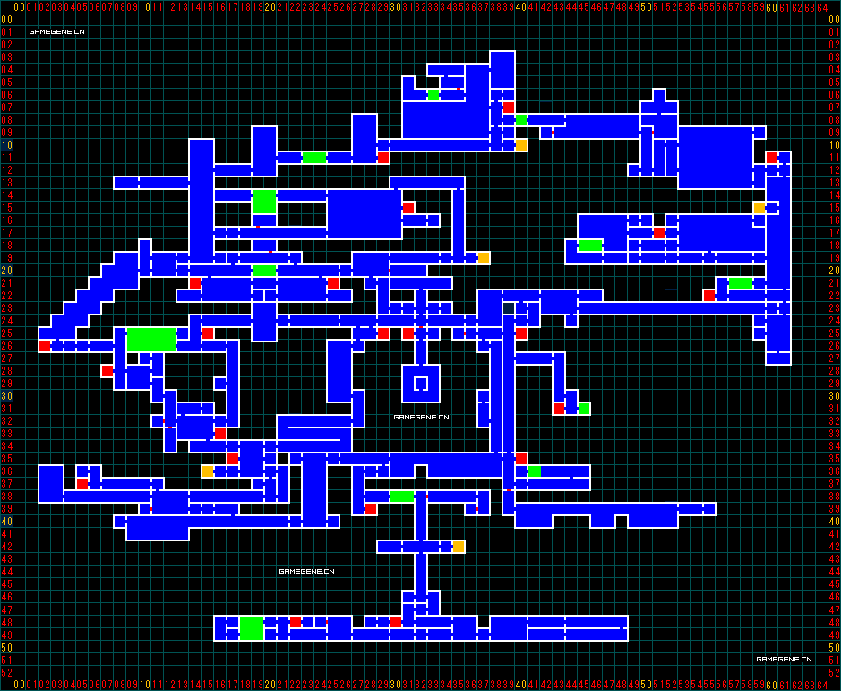 」。墙壁标红即为隐藏房间入口可以破坏。每个格子都有X轴和Y轴的坐标,用来定位,本站攻略和道具位置都会用这种方式标注。