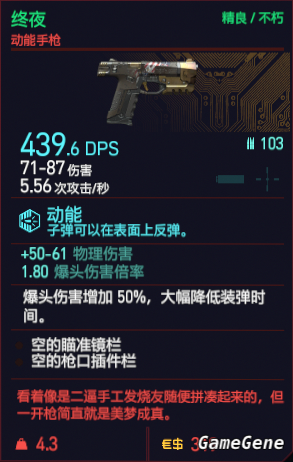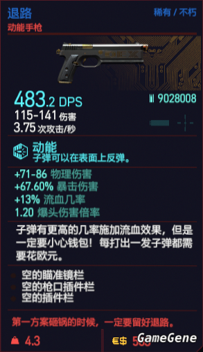 《赛博朋克2077》游戏的武器设定规则比较迷惑,武器DPS首先是跟你的等级有关,你的等级越高,拾取的武器DPS越高,但在同样等级下拾取的同一个武器DPS也并非一成不变,也有一个浮动范围,比如当你等级是50时拾取的某个名字的手枪DPS浮动范围会在400~1000之间,而且附加属性(比如暴击率这些)也随机变化,敌人掉落的武器也同样遵循这个规则(所以可以不停读档刷武器)。