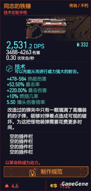 | 同志的铁锤 | 左轮手枪 | 主线进展到「黑梦」,来到河谷区「红泥酒吧」传送点,东南方向有个骷髅头,干掉这里的头头「达瑞斯·麦尔斯」可以得到「同志的铁锤」的图纸。 |