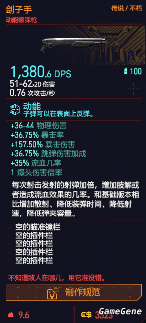 | 刽子手 | 霰弹枪 | 主线进展到「黑梦」,来到北橡区东面的「荒坂地产」传送点,西北方向有个骷髅头,干掉这里最大的机器人BOSS「军用科技机甲」可以得到「刽子手」的图纸。 |