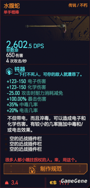 | 水腹蛇 | 单手棍棒 | 主线进展到「垃圾场」,到诊所去找指头哥的时候进屋先别跟指头哥对话,到里屋的床上可以得到这个武器。 |