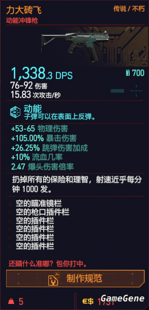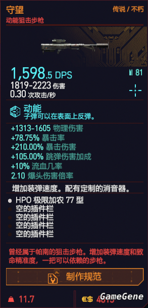 不朽武器在遵循如上规则的同时又有更多玩法,不朽武器只要拾取到就可以制作它的更高品质版本,比如游戏一开始从商店拿到绿色的精良品质「终夜」,打开你的制作页,会发现可以制作蓝色的稀有品质「终夜」,不仅如此,当你制作完蓝色的稀有之后还可以制作紫色史诗,直到橙色的传说为止。制作出来的武器DPS也跟你的当前等级有关,并且有一个浮动范围。理论上如果你想要制作这个不朽武器的最强版本,就等到50级满级之后再制作。如果你拾取的不朽武器本身就是传说品质,那就无法再制作了。
