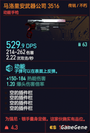 | 马洛里安武器公司3516 | 手枪 | 接到最终任务「夜曲OP.55 N.1」的同时可以会接到罗格的支线任务「插管」,把「插管」做完就可以得到这把银手的专属武器。 |