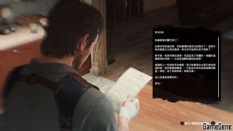 到1楼调查餐桌上的信,剧情之后调查门,对话后本章结束。