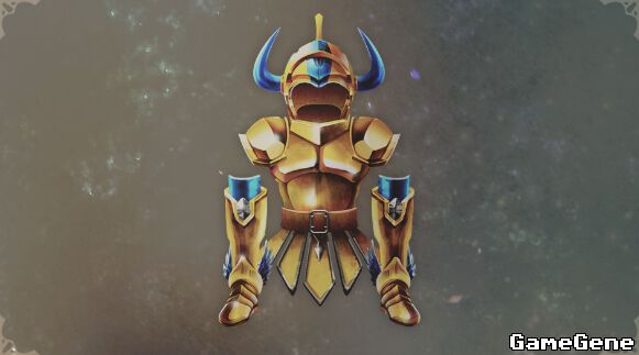 介绍:施加了蓝色装饰的金色铠甲,穿着的战士手刃高塔恶鬼,成功救出公主。