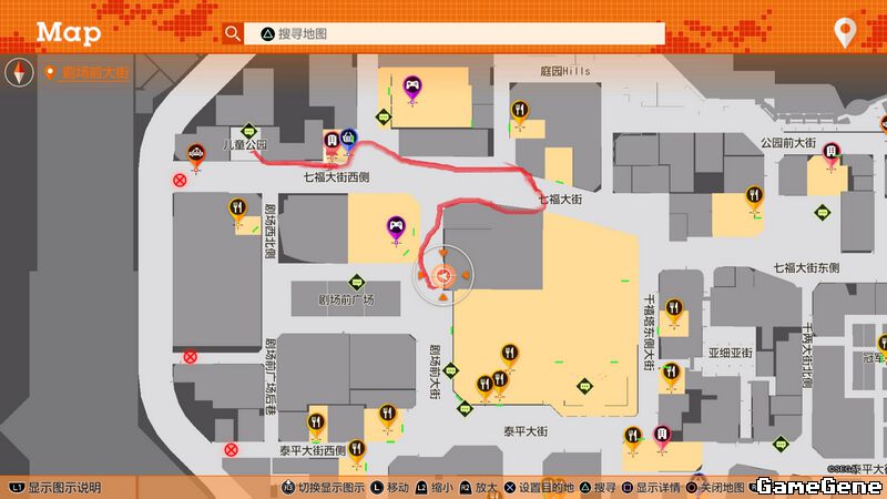 如图,从小酒馆街道求生者酒吧左侧空地开始,用滑板如图跑路跑一圈,期间两个小岔路看有没有发光点,有就捡了没有就不管,跑一圈回到空地,开无人机再按跑的路线飞一圈,也就是说是跑一圈加飞一圈获得的宝石是上面神室町那刷法的两倍宝石,一趟好点10多个,差点有5个以上。跑加飞一圈后存档读档就刷新,效率再次提高。