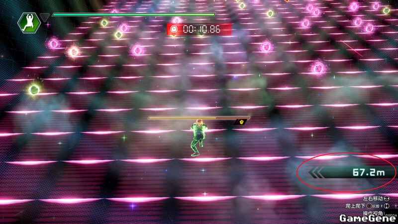 前几作的战斗,无人机射击,打虎(老虎在长赛程里面,3星拳头标识,我遇到的是光子刃打败3只老虎)都有,本作新的体能挑战反而不如删掉的破坏好玩,体能挑战的玩法就是爬墙,首先如图把视角拉成仰视视角,然后往上爬,红色法球是加速,黄色是回血,然后最终爬的距离算在星星上,比如爬了63.2米,给6个星星,只看十位数,不四舍五入。另外,体能挑战有2种地图,图中这种全连着只需要往上爬的是一种,另一种是好多断壁,需要横向移动来继续爬,第2种地图非常难爬高,毕竟横向移动也算时间。