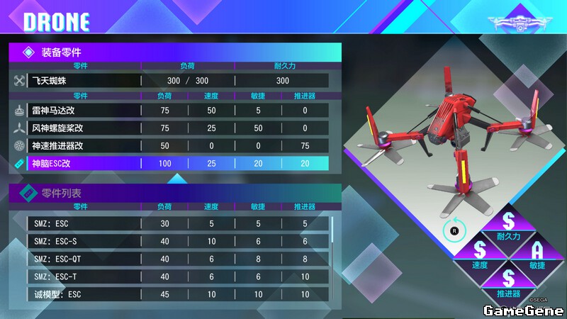 冠军联盟和计时赛配置如图(对比前作,推进力上了一个档次,敏捷上了两个档次,前作同名装备是SAAA):