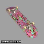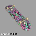滑板介绍:以紫色为基调的花俏滑板。加速、回转、极速都经过调整。