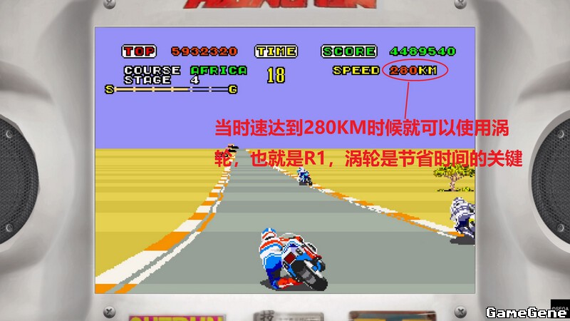 超级摩托车(SUPER HANG-ON) 速度到280KM/h摁住R1,增速到324km/h,会爆加分