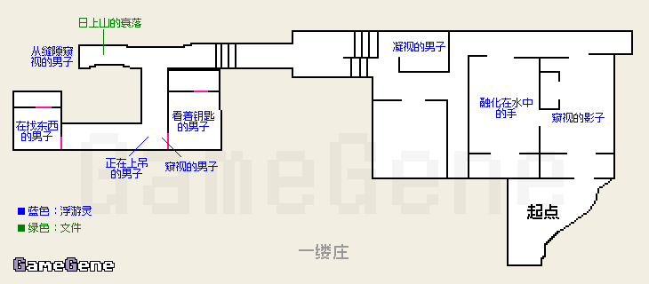 之后就可以原路返回了。在钻过破洞时,前方房间门口可拍摄到浮游灵「窥视的男子」