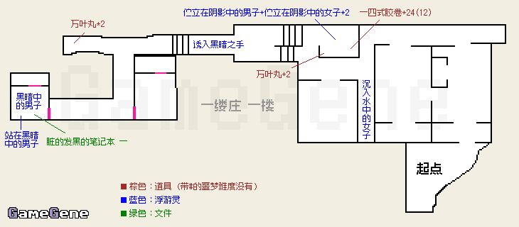 直走到头可捡到【万叶丸】,随后会出现怨灵「深津瑞枝」,干掉