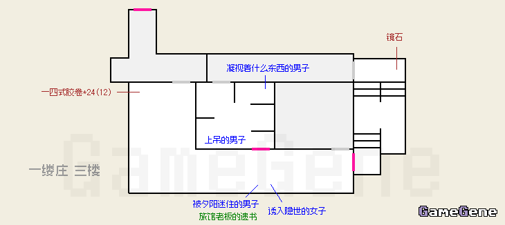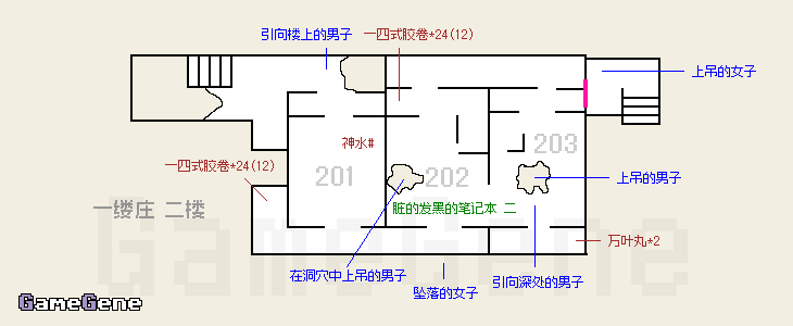 然后从203室对着202室拍照,可拍到浮游灵「在洞穴中上吊的男子」,并入手文件「脏的发黑的笔记本 二」