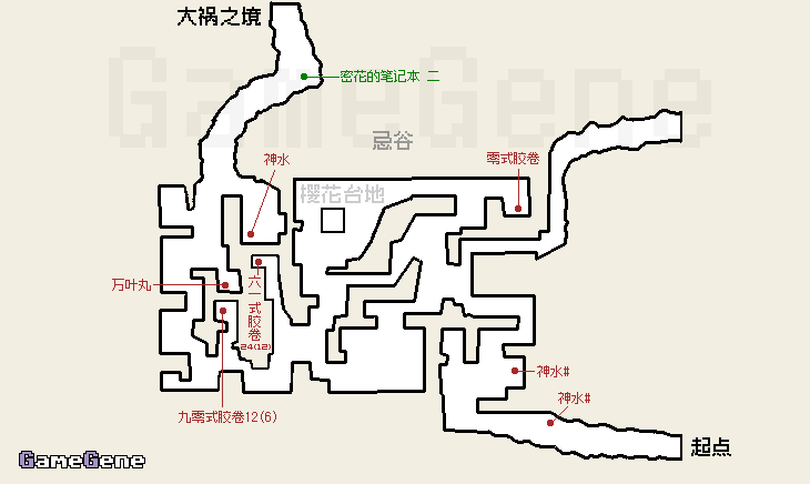 跟着密花走,会遭遇神官怨灵「火继守卫」,如果之前没有看取的话这次可以看取了,胜利后直走进入忌谷