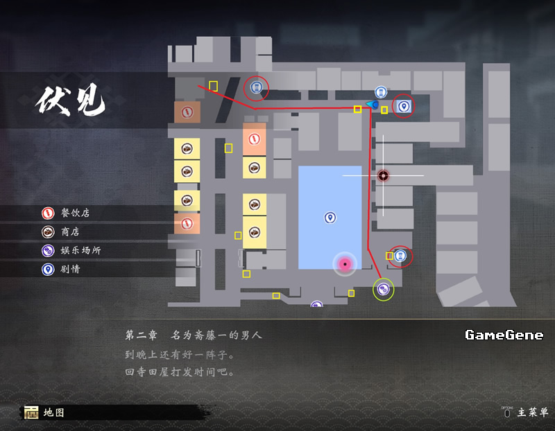 如图,红圈是神社或地藏,黄颜色方块是壶,按照这个路线,绕着寺田屋外围跑一圈可以神社或地藏参拜,壶一起刷,刷了后去河钓场或者卡拉OK店进去出来都能刷新场景,壶如果刷够了就按照途中红色路线去单刷神社或地藏,河钓场出发,刷3个神社或地藏后去歌唱酒馆刷新,再返回去循环。