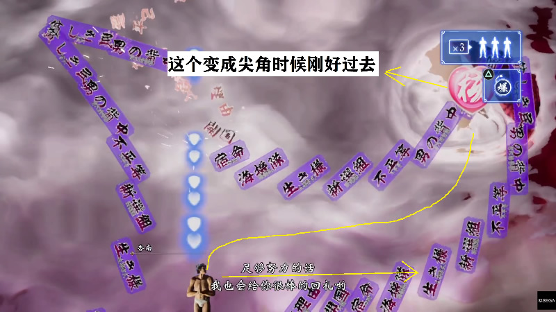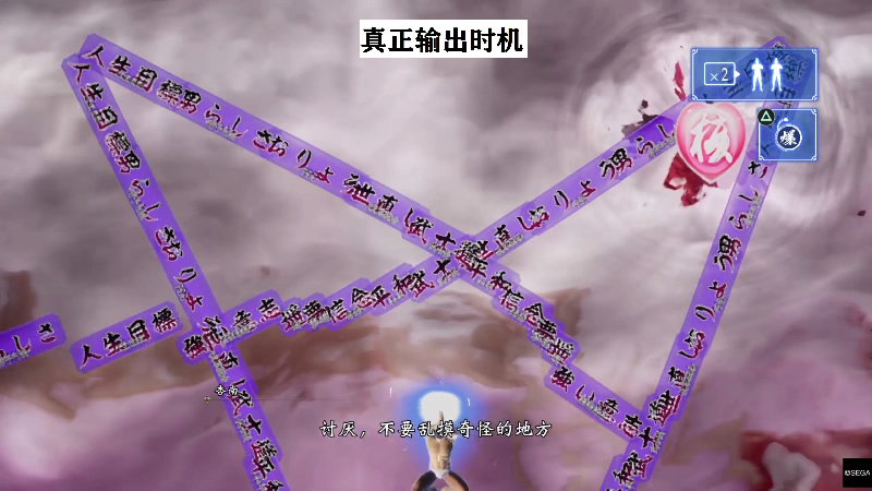 是二阶段的强化版,输出时机开始有大字干扰,这时候可以用送命使用大招的方式,每条命开始的时候有几秒无敌,因此还可以蓄力一次,举例,大招清屏,蓄力看准爱心,释放蓄力打爱心,送死,无敌中蓄力,释放能量,循环,爱心和命伤害累计的。硬打也是可以,那就需要足够的耐心了。