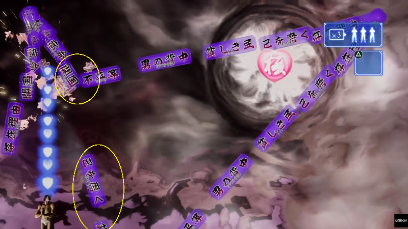 如图黄圈,二阶段要注意要射击上面黄圈的那个交点,保证能向右移动,同时等下面黄圈那个弹幕过去。