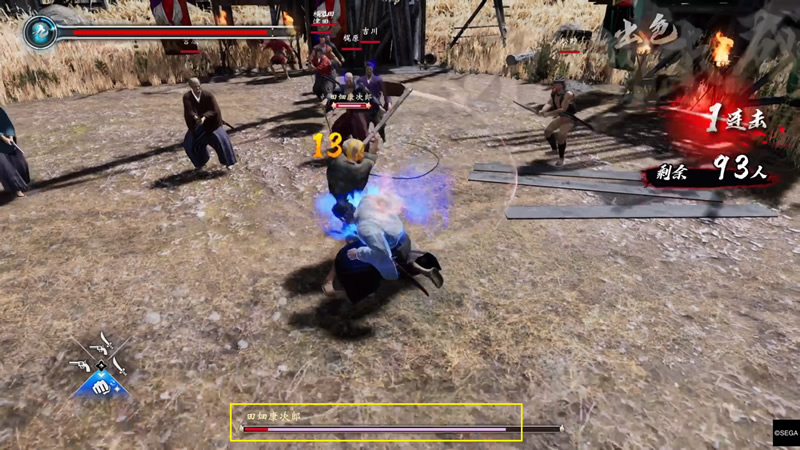| 乱战斗技 其六 | 砍敌人攒气,有气就按住R1+三角,使用极【乱舞技 铁火连段】打AOE伤害。 |