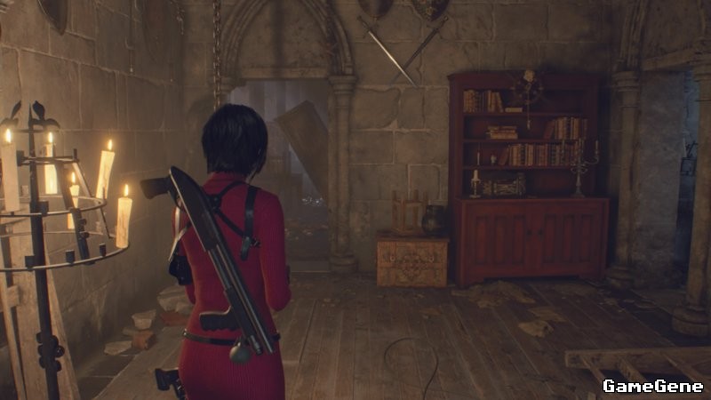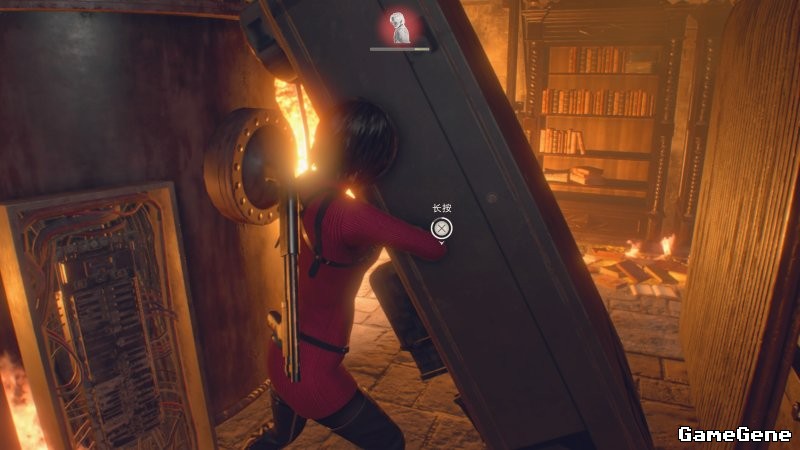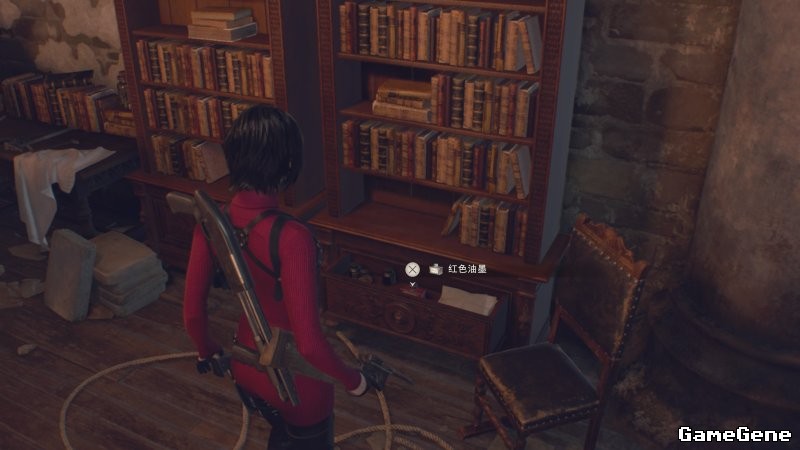 重新回来刚才的入口处,先走左边,推开书柜进去。