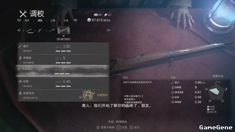 商人处整理下,购买武器:Red9,配件:枪托(Red9),卖掉黑尾AC和TMP,然后购买闪光弹配方,最后剩余的钱把栓狙改满,高级改造可以等后面用尖晶石兑换。(PS:Red9和枪托一起卖了,果断换,这样伤害高一些,tmp和没满改的黑尾AC伤害太低,钱都改狙击枪了没钱改黑尾)。别忘了这里要兑换1个小钥匙。