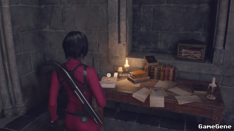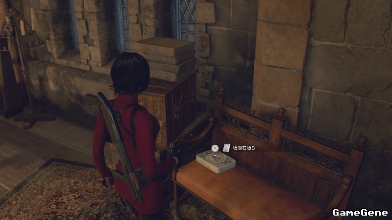谜题机关对面沙发上,拿到关键物品:版画石板B。