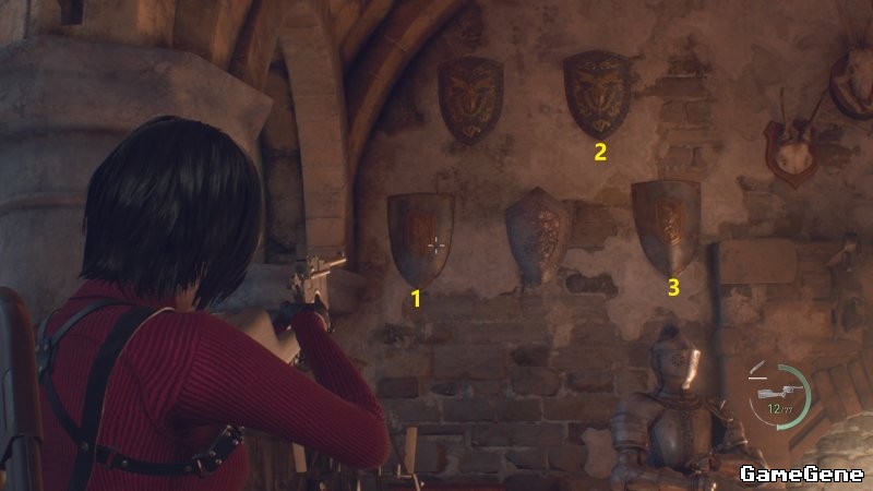 迅速转回去,射击如图所示3只鹰挂牌开门。(ps:这里是先截图的,防止触发陷阱没时间截图)