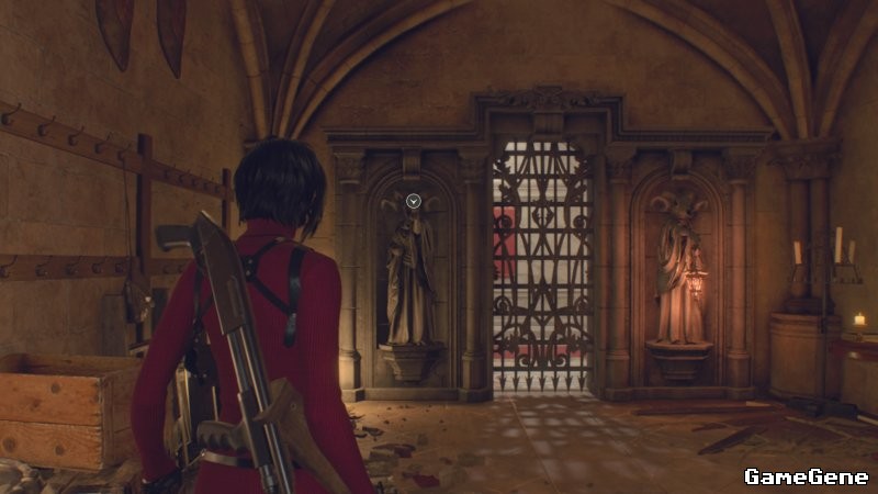 触发战斗,红衣主教偷走开门道具,通过面前绳枪过去,狙死红衣主教,拿到关键物品:青月石雕。