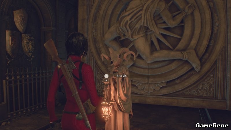使用绳枪出去,然后去挂上关键道具:绯红提灯,进入珍宝库上层。