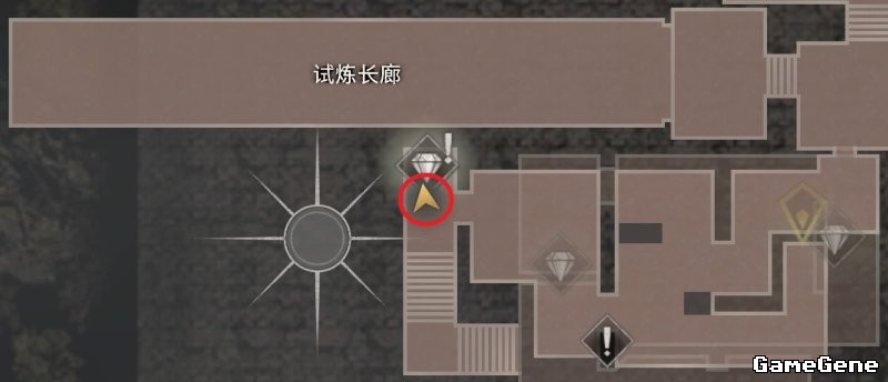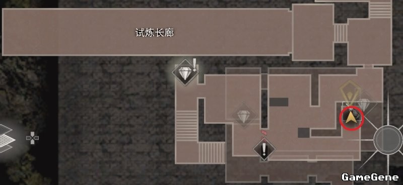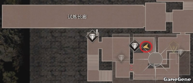 来到试炼长廊入口处,缺少道具开门,只能往右走。