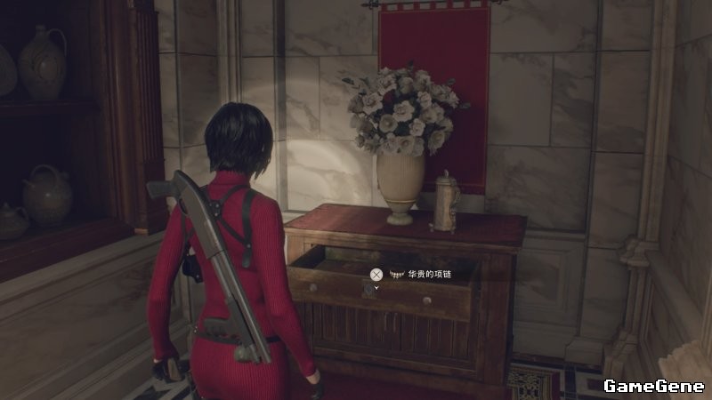 珍宝库上层,如图位置,有一个上锁的抽屉,使用小钥匙打开,里面有宝藏:华贵的项链。