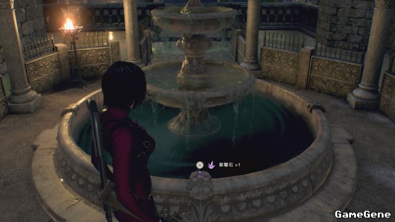 喷泉的背后,花型台座上有额外宝藏:紫馨石。