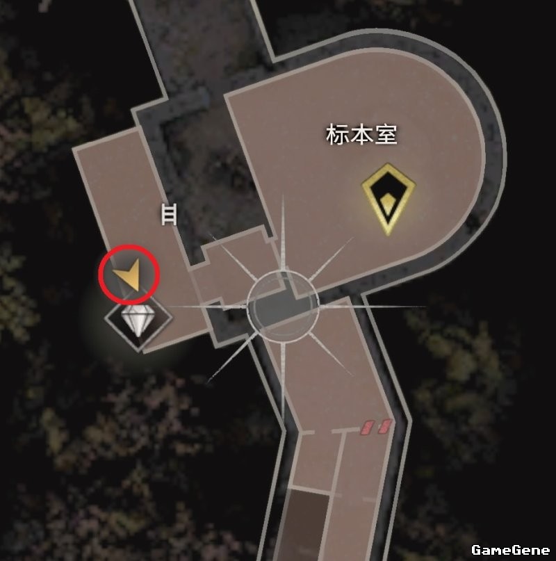 标本室南部如图位置,在密码锁左侧桌子上,拿到文件【标本师的笔记】。