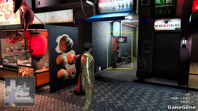 位置:招福町,“烧肉うえる团”牛头人招牌旁边,被围住的男子。