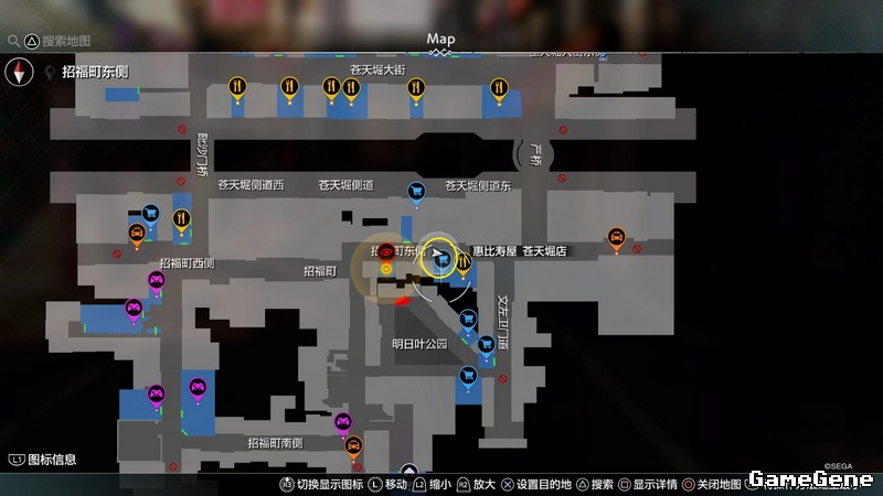| 7 | 第四章白天 | 接支援MAP【62.解开便条上的谜语】(第四章才会出现),也就是苍天堀大街,大阪王将背后,坐在椅子上的男子对话,接了任务后再去招福町,4个金色乌龟的柱子,对面的商店“大气轩”屋檐上金珠,使用蛛丝获得。 |