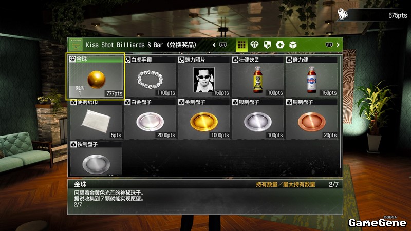 第3个金珠,招福町南侧,Kiss Shot Billiards & Bar店内,台球商店777pts兑换。