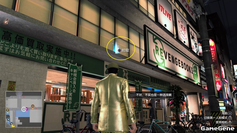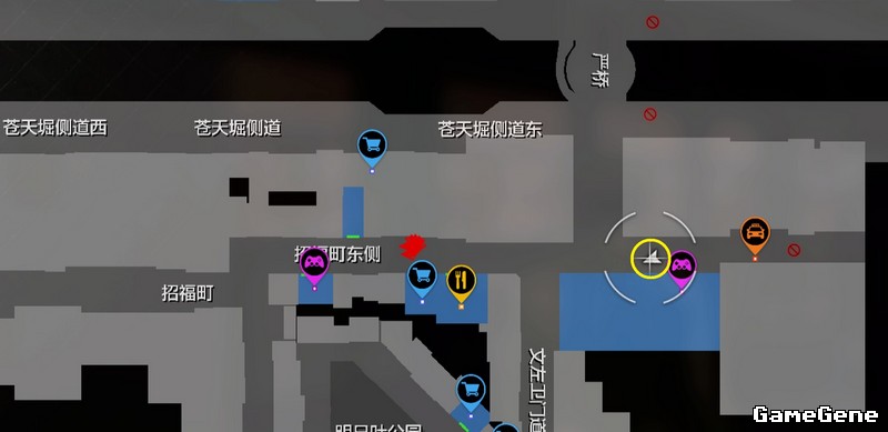文左卫门道东侧,CourStar店门口西侧如图位置,使用蛛丝拾取到飞镖【铅笔】。