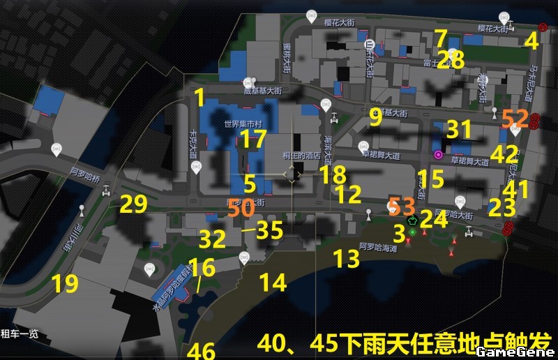 | 10 | 十分喜欢美式漫画的韩俊基 | 夏威夷1 | 樱花大街与马卡尼大道交界处 | 靠近后主动触发 |